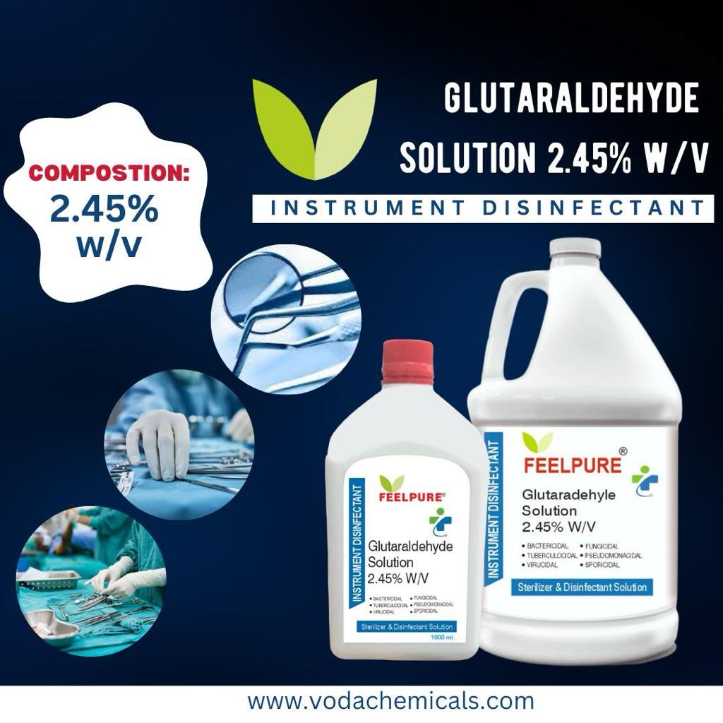 Glutaraldehyde 2.45% is a disinfectant chemical solution commonly used as a disinfectant and sterilizing agent. It is known for its broad-spectrum antimicrobial properties, effectively killing bacteria, viruses, fungi, and even spores. The 2.45% concentration indicates the specific strength of glutaraldehyde in the solution. Bulk Wholesaler