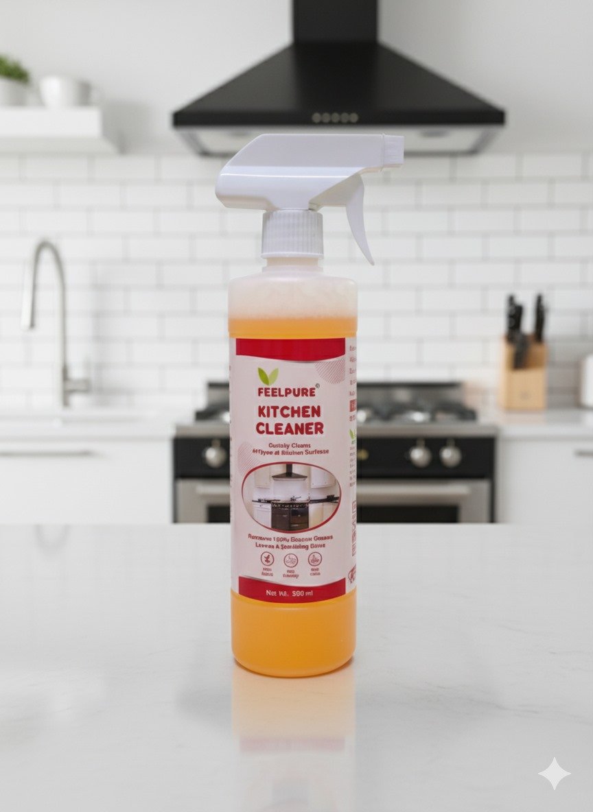 Kitchen Cleaner | Multipurpose Kitchen Cleaner | Voda Feelpure Kitchen Cleaner | Degreasing Spray | Kitchen Disinfectant | Surface Cleaner | Grease Remover | Eco-friendly Kitchen Cleaner | Stainless Steel Cleaner | Tile & Countertop Cleaner | Kitchen Hygiene Products | Voda Chemicals Pvt. Ltd. | Natural Kitchen Degreaser | Safe Kitchen Cleaning Solution