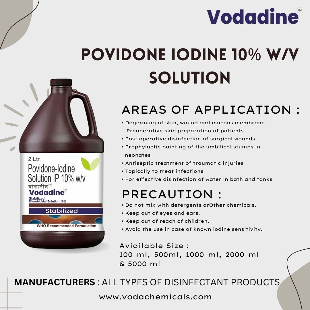 #PovidoneIodine #Vodadine #AntisepticSolution #WoundCare #InfectionControl #SurgicalAntiseptic #FirstAid #SkinDisinfection #HospitalGrade #VodaChemicals